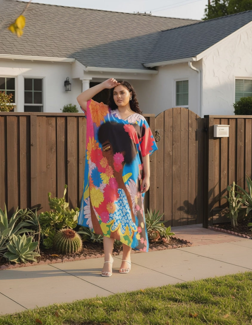 Multicolor Polyester Floral Caftan Dress For Plus Size Women