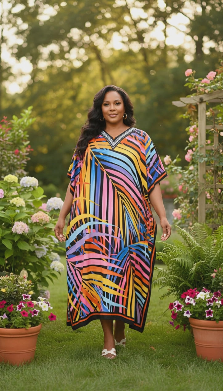 Multicolor Abstract Women Plus Size Kaftan Dress for Summers