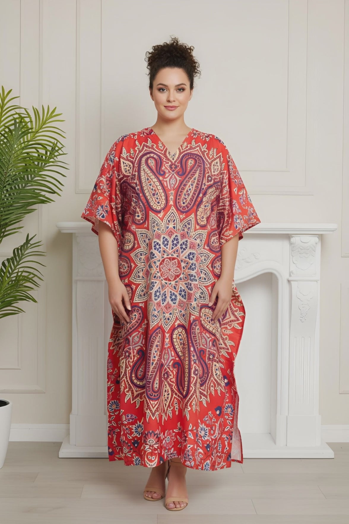 Red Solid Satin Plus Size Kaftan Dress For Women