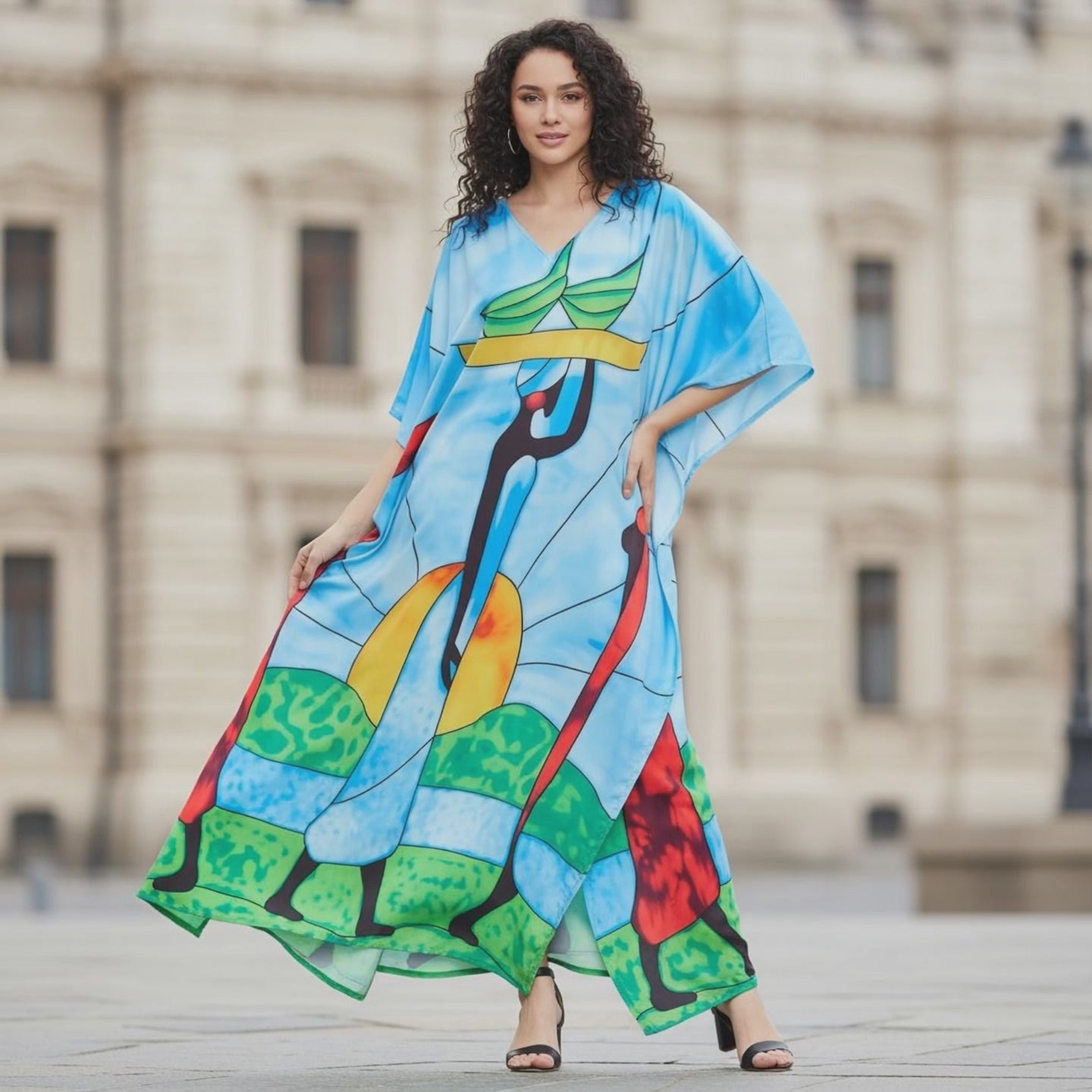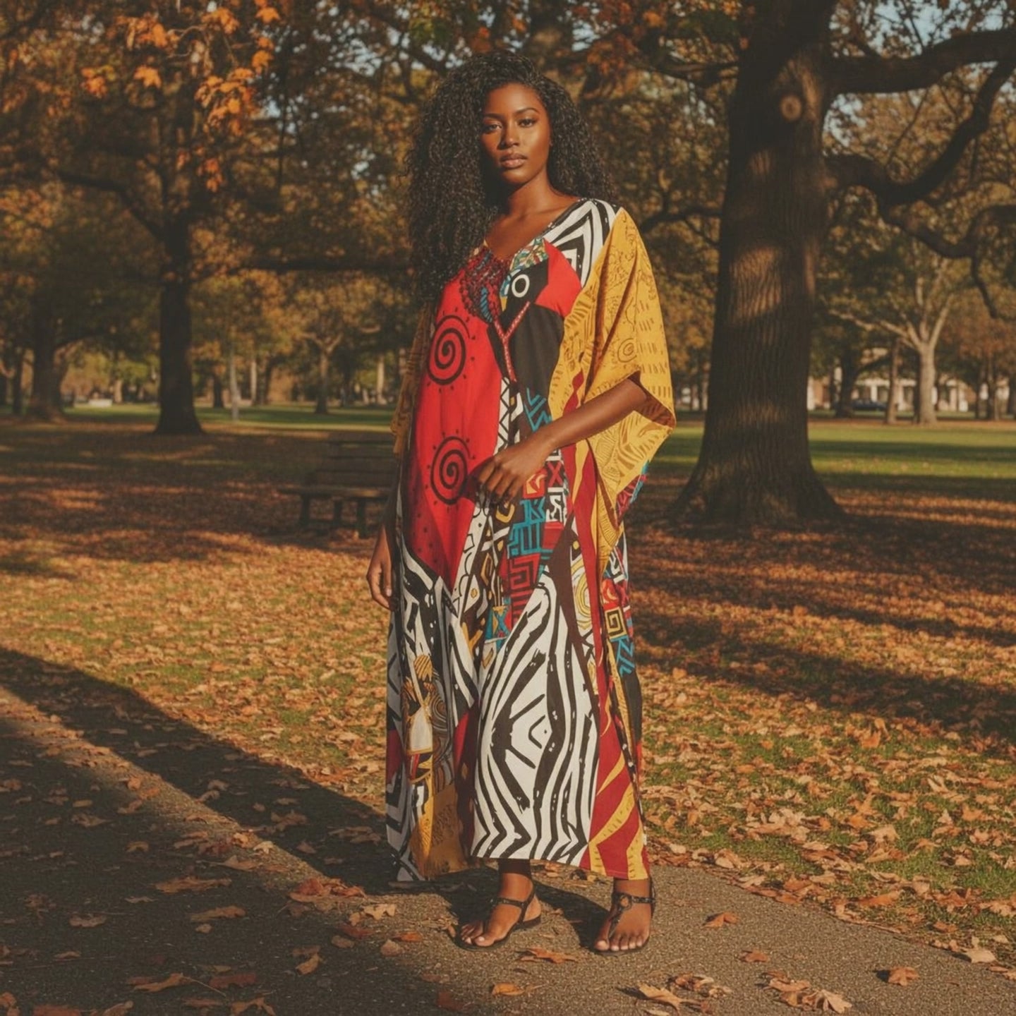 Kaftan Dress For Plus Size Women Tribal Printed Multicolor Polyester