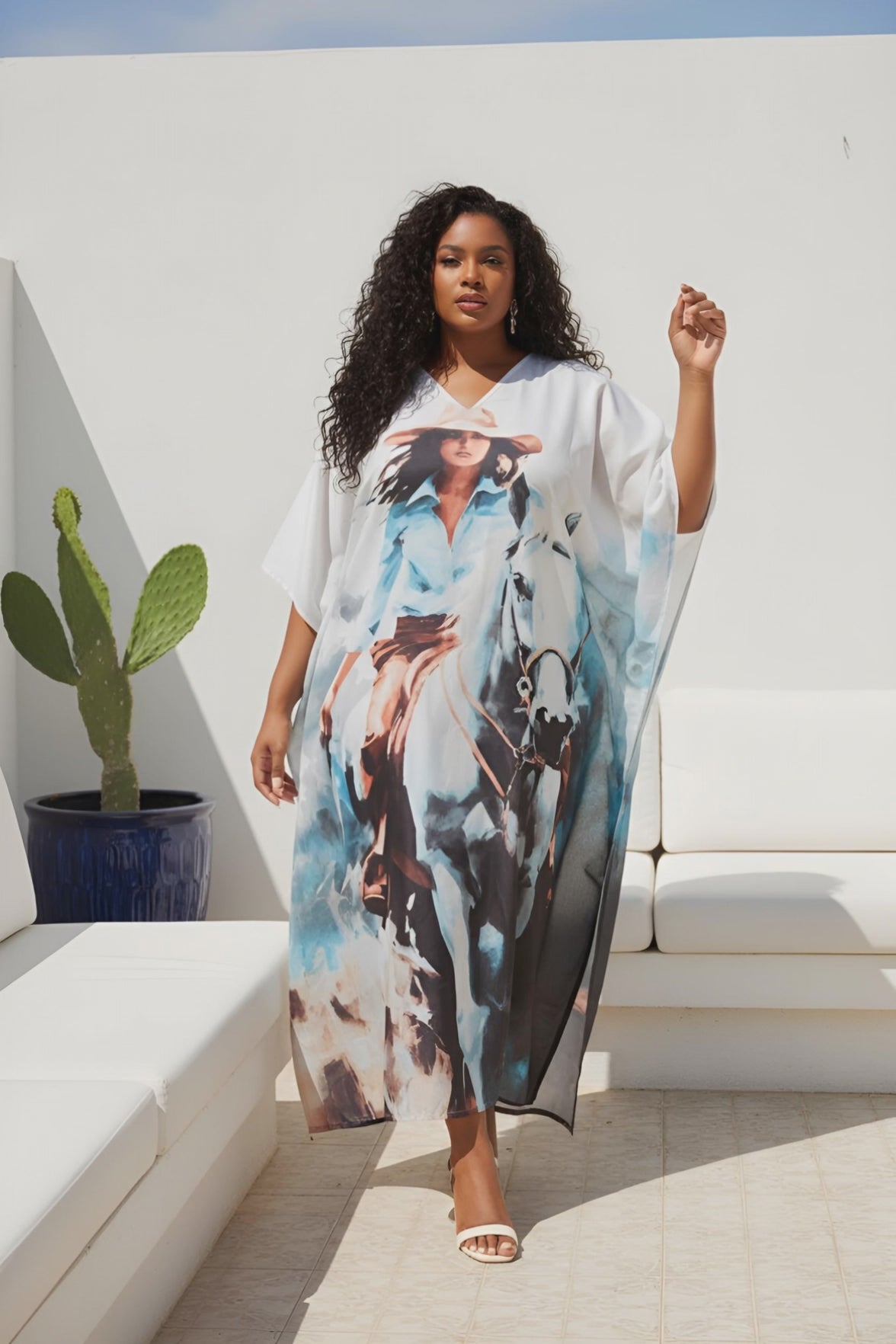 Butterfly Multicolor Plus Size V Neck Kaftan Beach Coverup for Women