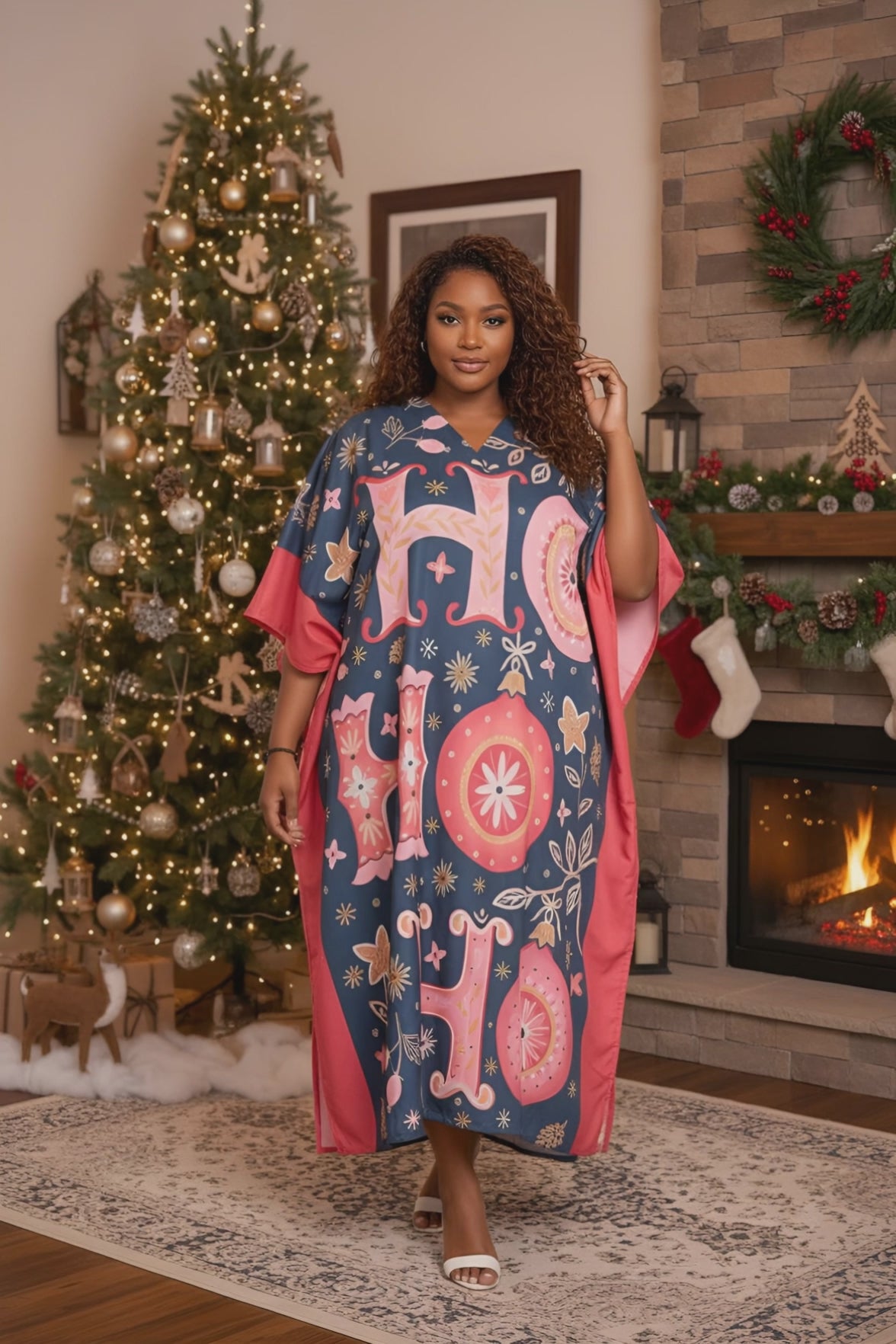 Tribal Multicolor Polyester Plus Size Loungewear Kaftan for Women
