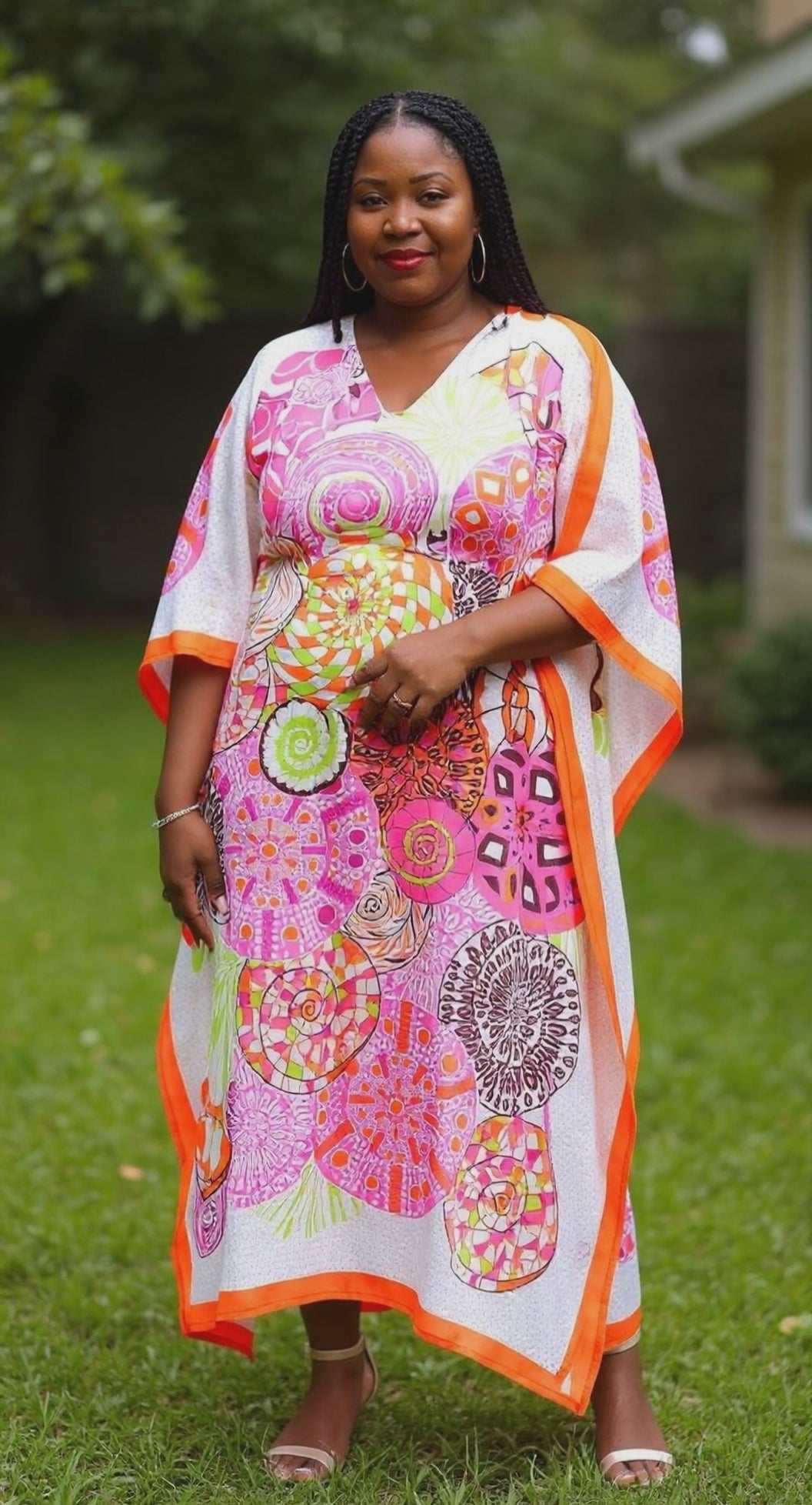 Abstract Printed Multicolor Polyester Kaftan For Plus Size Women