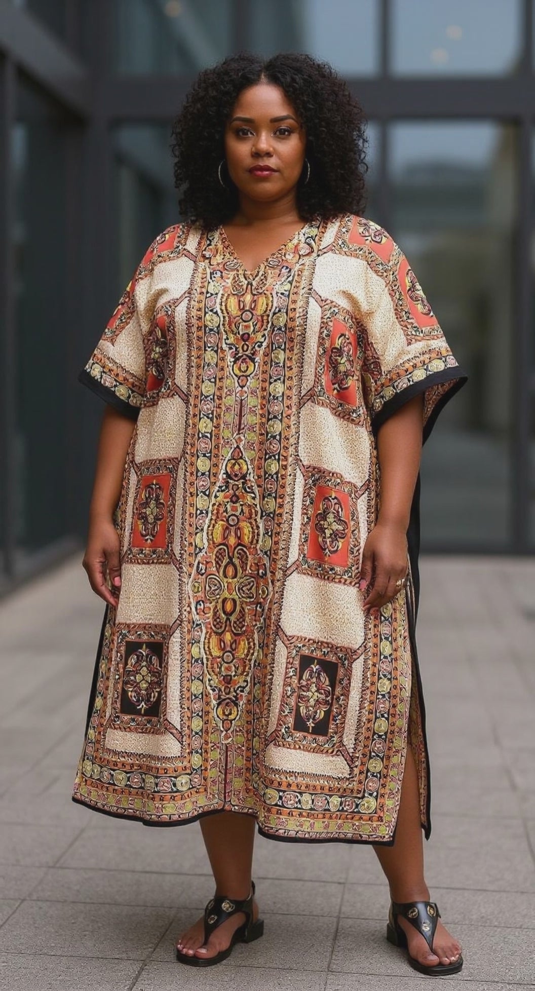 Tribal Printed Multicolor Polyester Women Plus Size Caftan