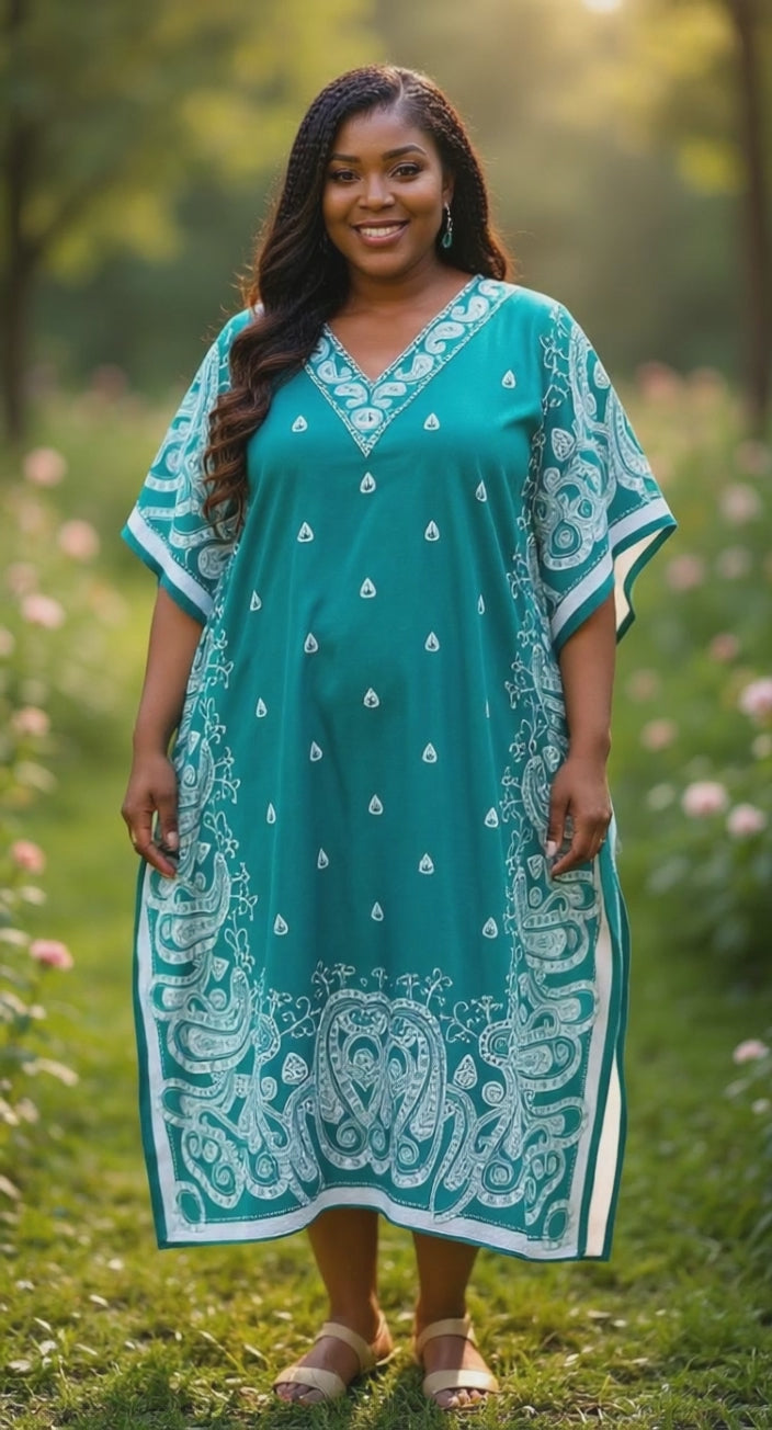 Paisley Turquoise Polyester Plus Size Kaftan Dress for Beach
