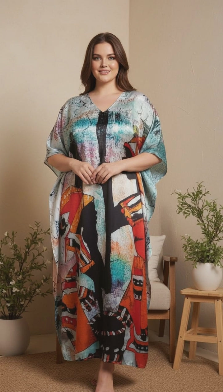 Abstract Multicolor Plus Size Women’s Kaftan for Resort Vacations