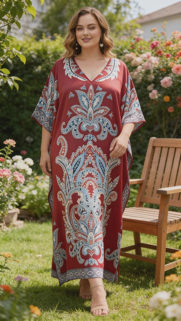 Maroon Paisley Satin Women Plus Size Kaftan Dress for Evening Parties