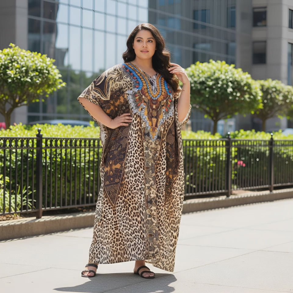 Leopard Pattern Polyester Kaftan For Plus Size Women
