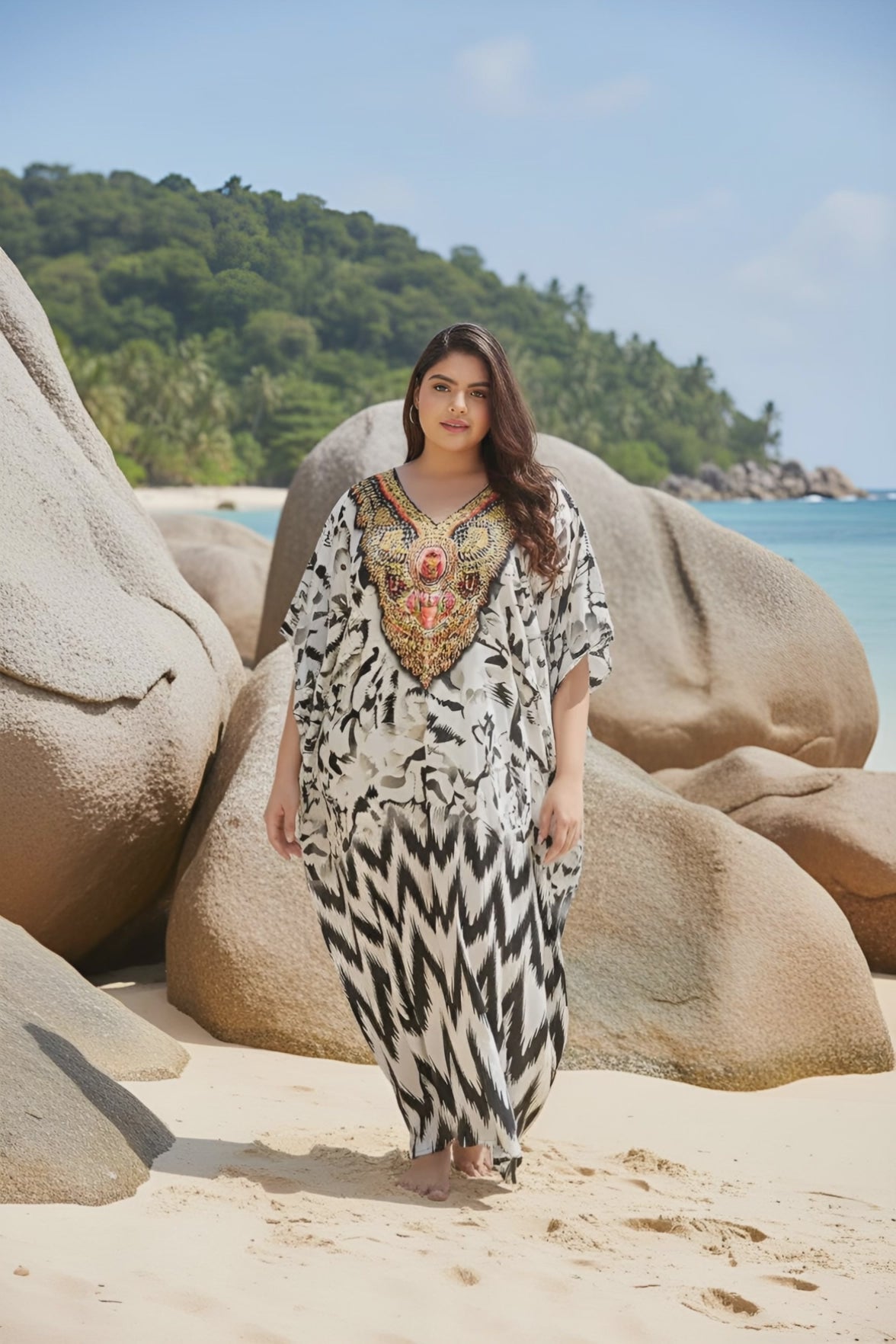 Black Animal Women Plus Size Kaftan Dress Cover Up