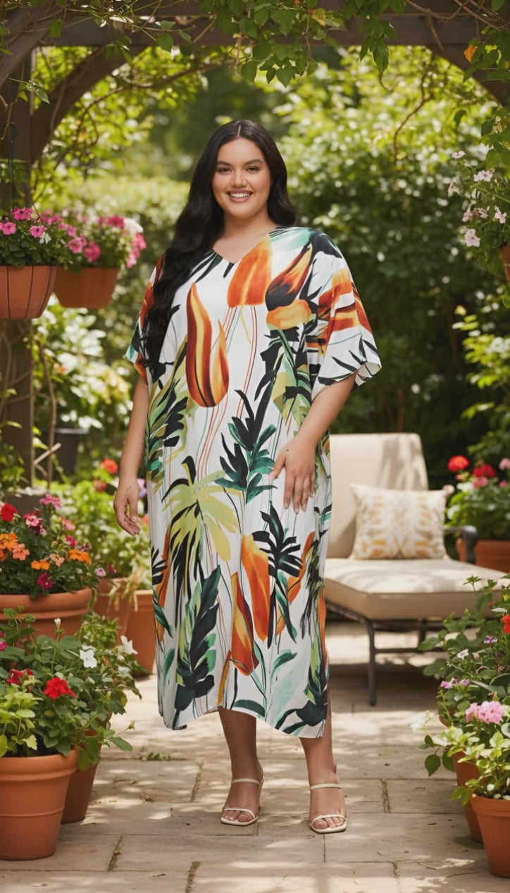 Leaf Multicolor Polyester Kaftan Dress for Plus Size Women
