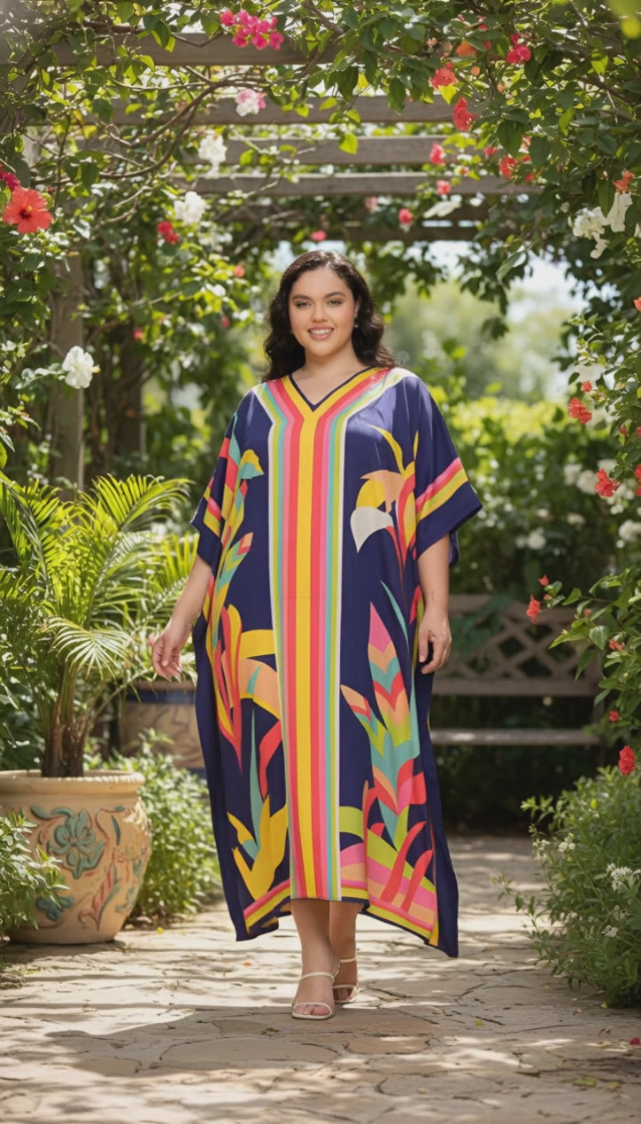 Floral Abstract Satin Silk Caftan Dress for Women Plus Size