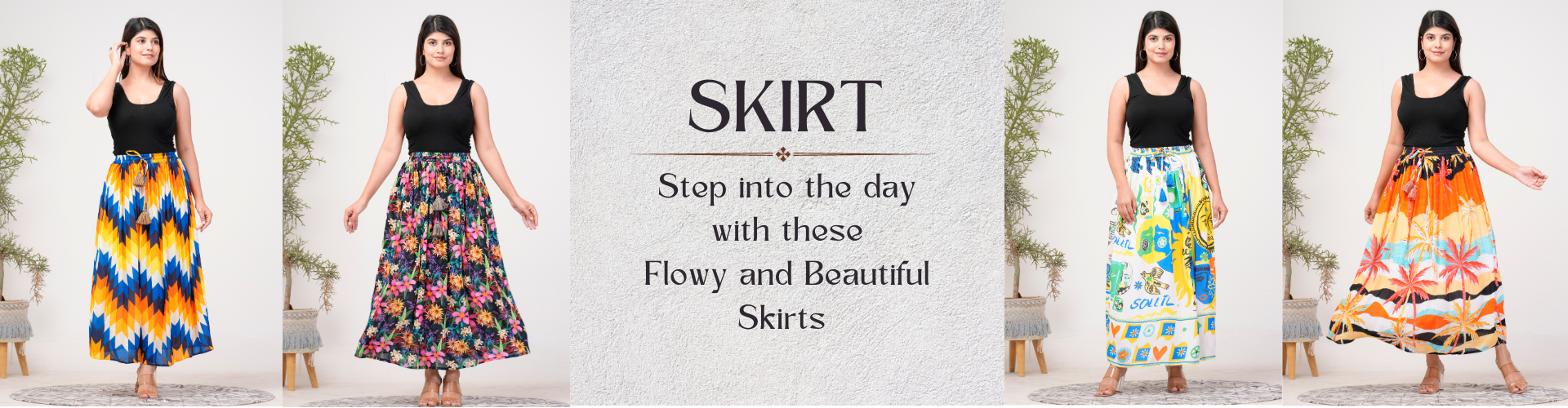 Digital Print Multicolor Poly Knit Rayon Skirt For Women