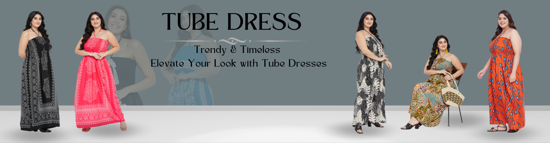 Floral Polyester Party Wear Plus Size Tube Dress For Women