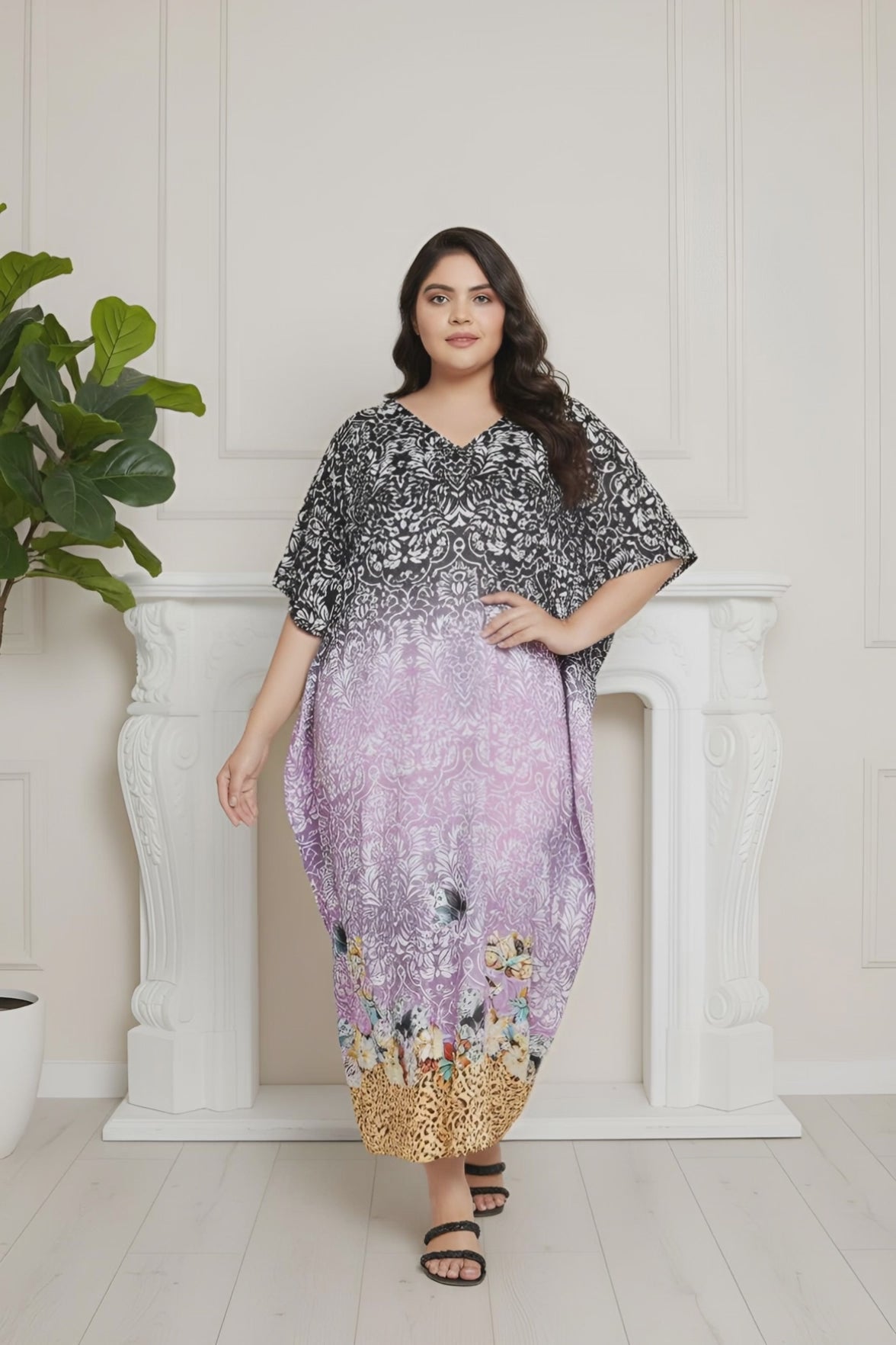 Floral Printed Multicolor Plus Size Polyester Kaftan Dress For Women