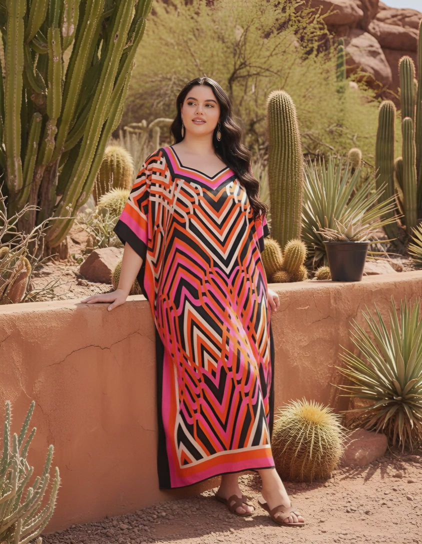 Stay fashionable and comfortable with our Plus Size Kaftan for Women, crafted from soft and breathable polyester material. Ideal for relaxing, beach outings, or casual events, this lightweight maxi dress provides flattering fit for sizes 1X–3X. It serves as perfect beach cover-up, resort attire, everyday loungewear, or sleepwear.