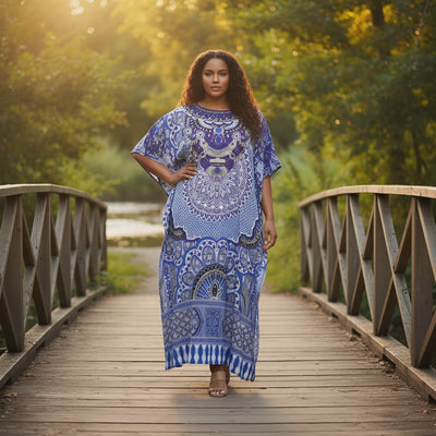 Upgrade your wardrobe with our Digital Printed Blue Polyester Kaftan Plus Size Dress for women. Shop now for trendy and chic fashion pieces! Details: Pull-On Closure Fabric: Polyester Pattern: Digital Printed Color: Blue Length: Maxi 52" Inches Size Types: Plus Size Silhouette: Fit and Flare Neckline: Round Sleeve Type: Kimono Fit Type: Loose SKU: SG152-8294 Washing Care: Delicately hand wash or machine wash with a gentle cycle to preserve the garment's beauty and longevity. |