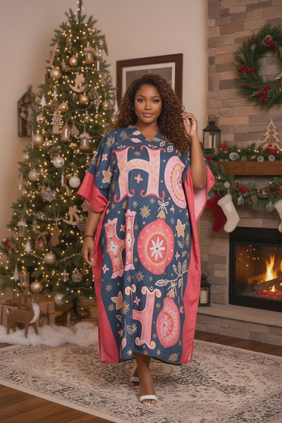 Enjoy the charm of our Alphabet Navy Blue Polyester Plus Size Kaftan for Women. It's an essential piece for those who appreciate style, comfort, and individuality.