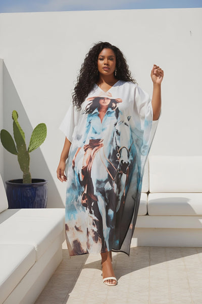 Animal Multicolor Polyester Kaftan Dress for Plus Size Women