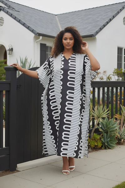 Enjoy the charm of our Geometric print Plus Size Caftan Swimsuit Cover Up for Women. It's an essential piece for those who appreciate style, comfort, and individuality.