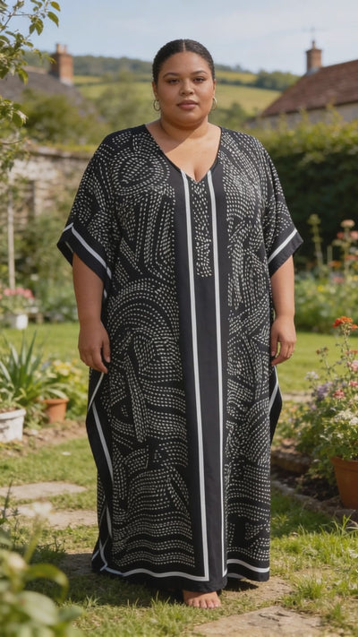 Black Striped Polyester Women Plus Size Kaftan Stylish Dress