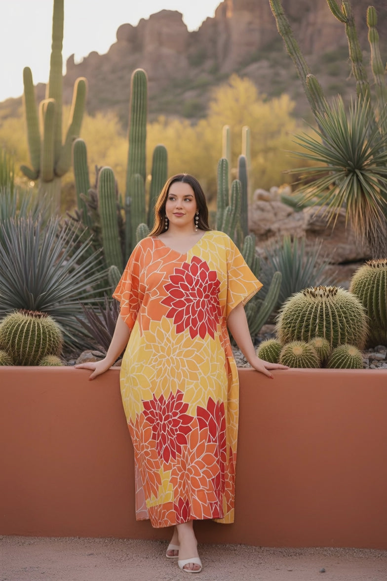 Enjoy the charm of our Yellow Floral Plus Size Beach Caftan Dress for Women . It's an essential piece for those who appreciate style, comfort, and individuality.
