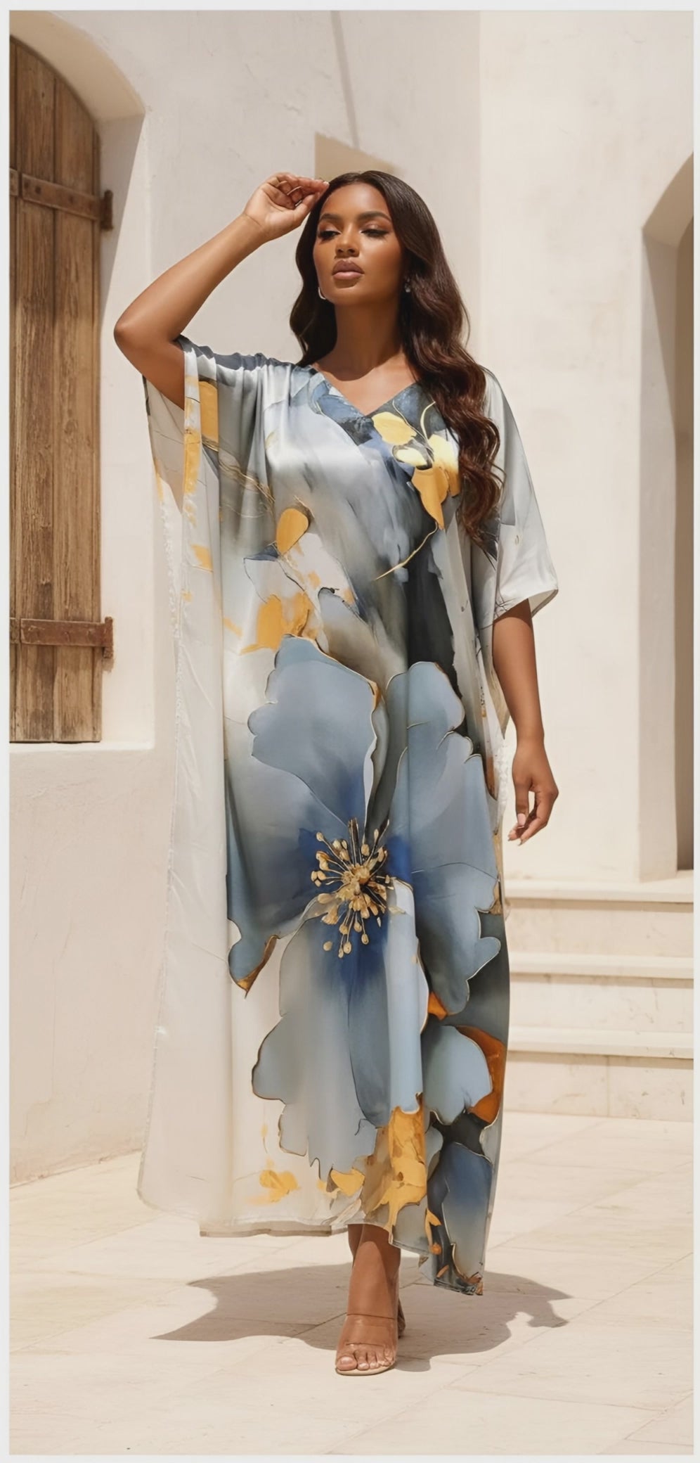 Shop our stylish plus-size Satin Silk kaftan, perfect for resort wear, beach cover-ups, or loungewear. Lightweight, flowy, and comfortable, designed to flatter every body type. Ideal for summer and fashion lovers.