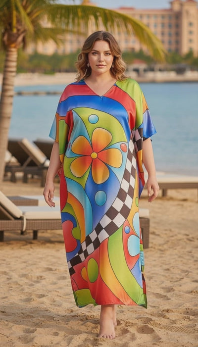Discover our satin plus size kaftan dress collection for women, designed for lounge, beach, resort, poolside, party, evening and special occasion wear. Each long loose kaftan features soft flowy satin, vibrant prints and relaxed coverage that flatters curves in sizes 1X–3X. Perfect as a modest maxi dress, vacation cover up or comfy loungewear, every plus size kaftan offers breathable comfort, easy slip-on styling and elegant boho-inspired patterns for everyday and holiday outfits.