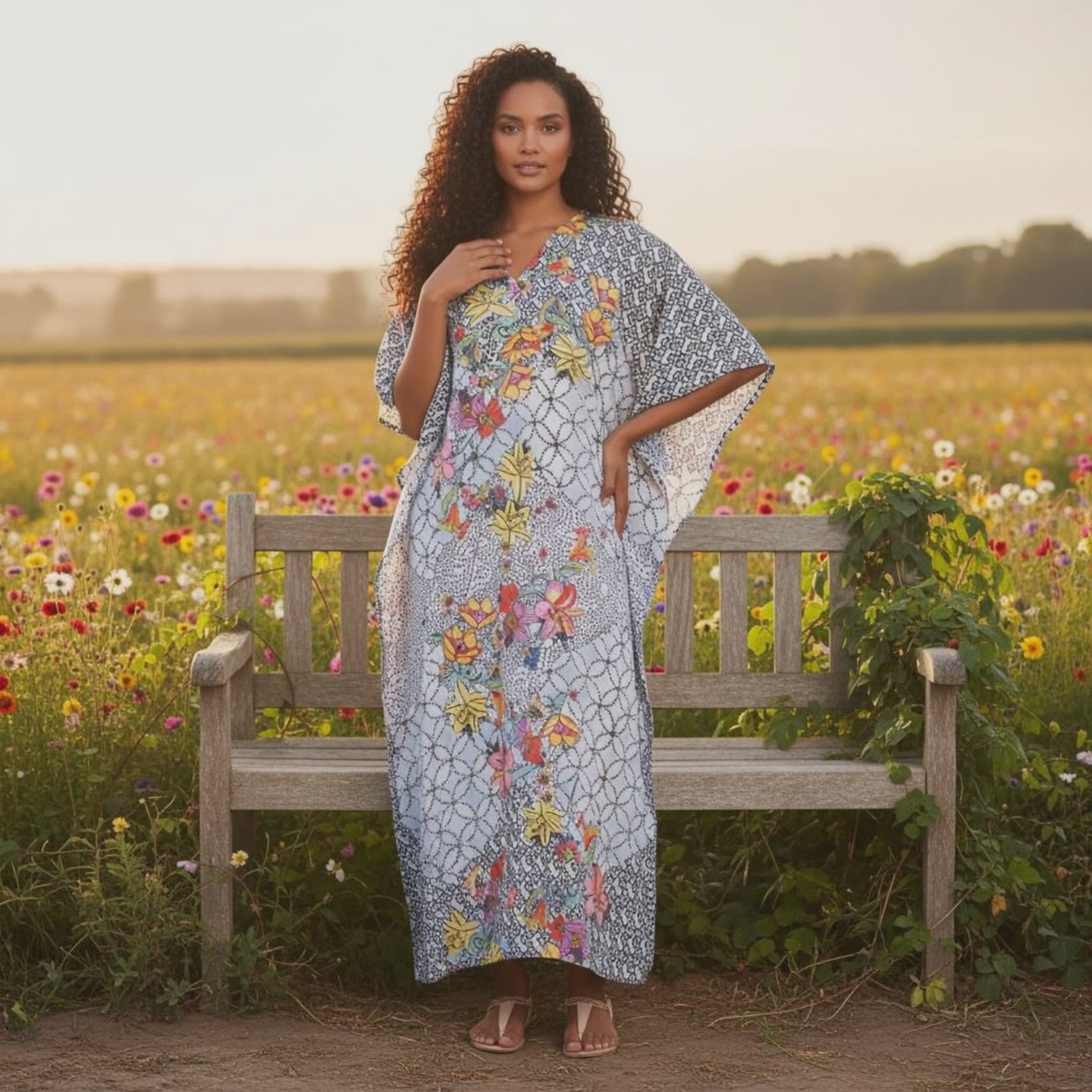 Browse our range of floral printed plus size black polyester kaftan dresses for women to find the ideal fit and style for any occasion. Details: Pull-On Closure Fabric: Polyester Pattern: Floral Printed Color: White Length: Maxi 52" Inches Size Types: Plus Size Silhouette: Fit and Flare Neckline: V-Neck Sleeve Type: Kimono Fit Type: Loose SKU: SG152-8451 Washing Care: Delicately hand wash or machine wash with a gentle cycle to preserve the garment's beauty and longevity. |
