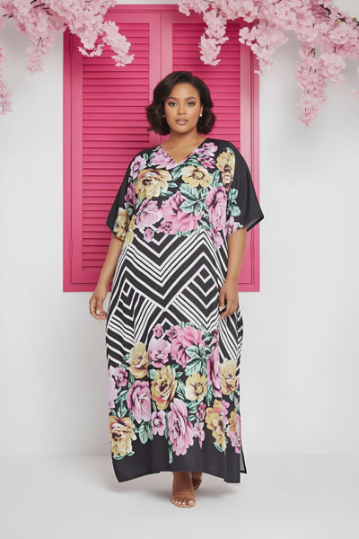 Embrace your curves in our floral printed black polyester kaftan dresses for plus size women. Shop now for fashionable and flattering styles!