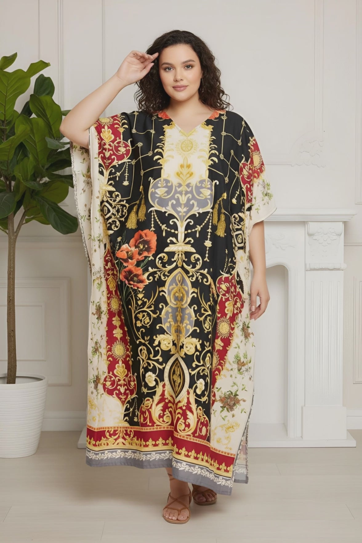Search our website for the perfect Floral Printed Black Polyester Plus Size Kaftan Dress for women. Find flattering and stylish fashion choices to add to your collection.