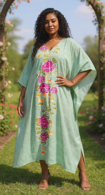 Find the latest floral printed green polyester kaftan plus size dress for women. Explore our collection and express your individuality with fashion! Details: Pull-On Closure Fabric: Polyester Pattern: Floral Printed Color: Green Length: Maxi 52" Inches Size Types: Plus Size Silhouette: Fit and Flare Neckline: V-Neck Sleeve Type: Kimono Fit Type: Loose SKU: SG152-8887 Washing Care: Delicately hand wash or machine wash with a gentle cycle to preserve the garment's beauty and longevity. |