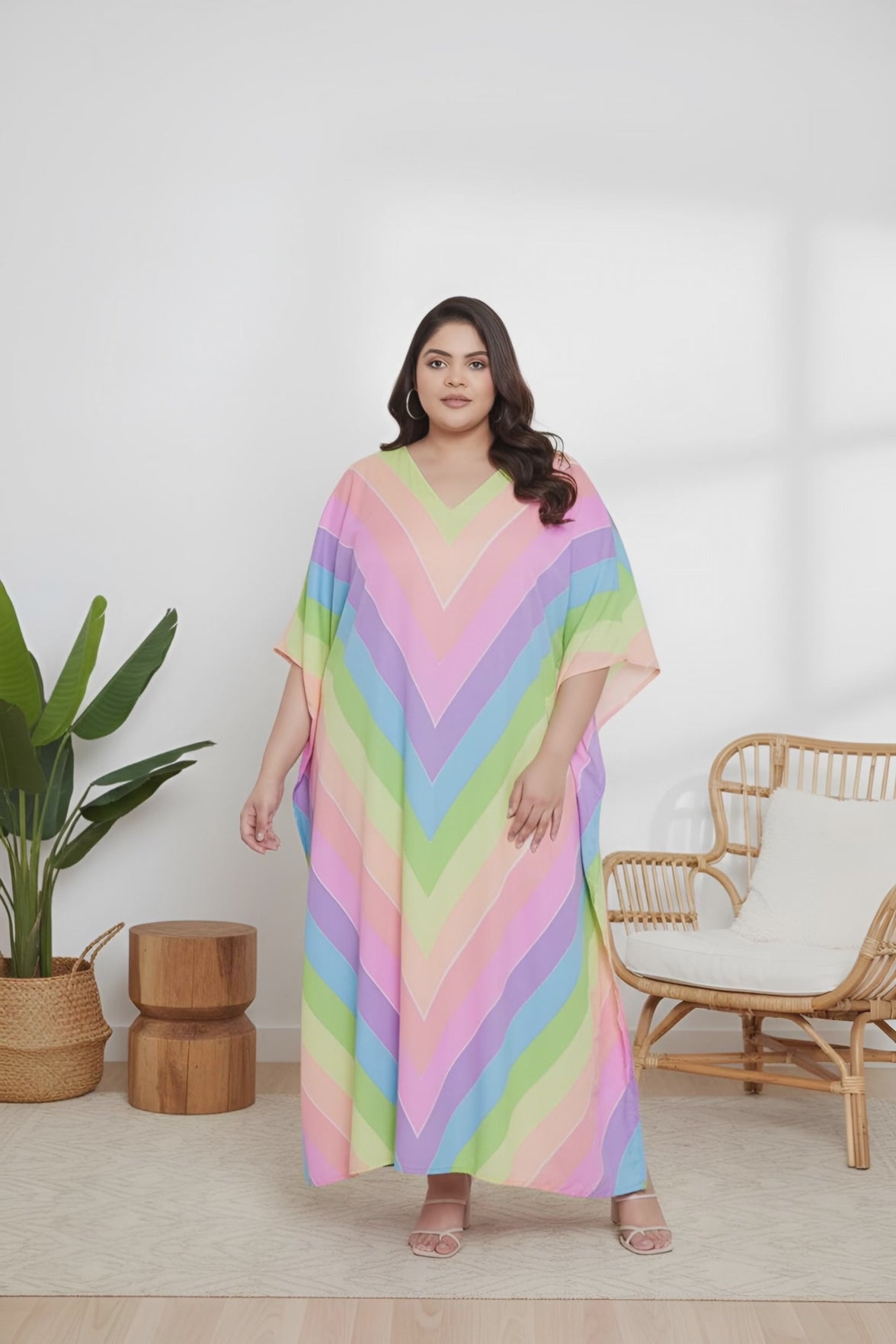 Channel your inner fashionista with our Floral Printed Multicolor Plus Size Polyester Kaftan Dress for Women. Shop now and make heads turn wherever you go.