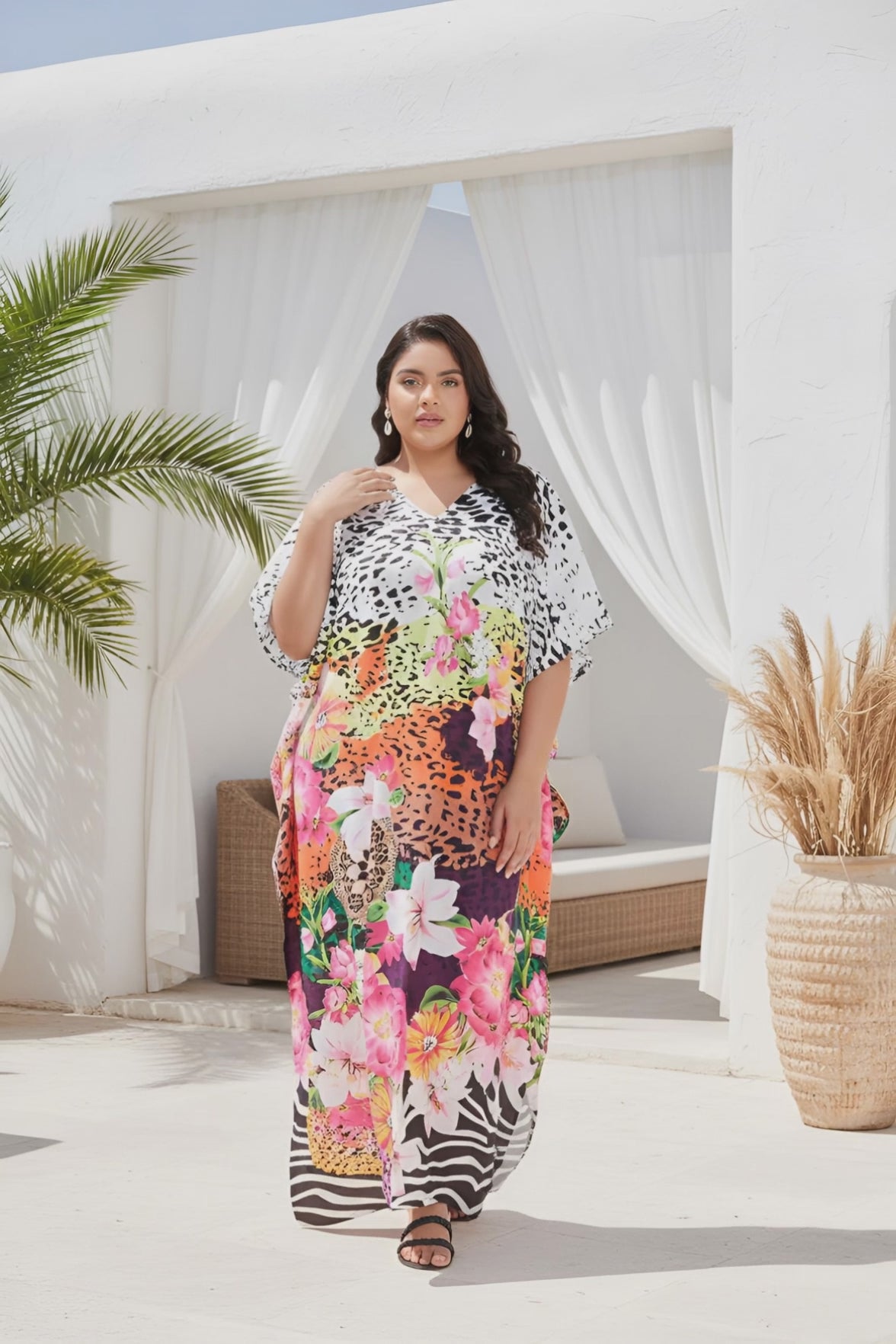 Keep up with the latest fashion trends by choosing from our assortment of Floral Printed Multicolor Polyester Plus Size Kaftan Dresses for women. Find your standout piece now on our website!