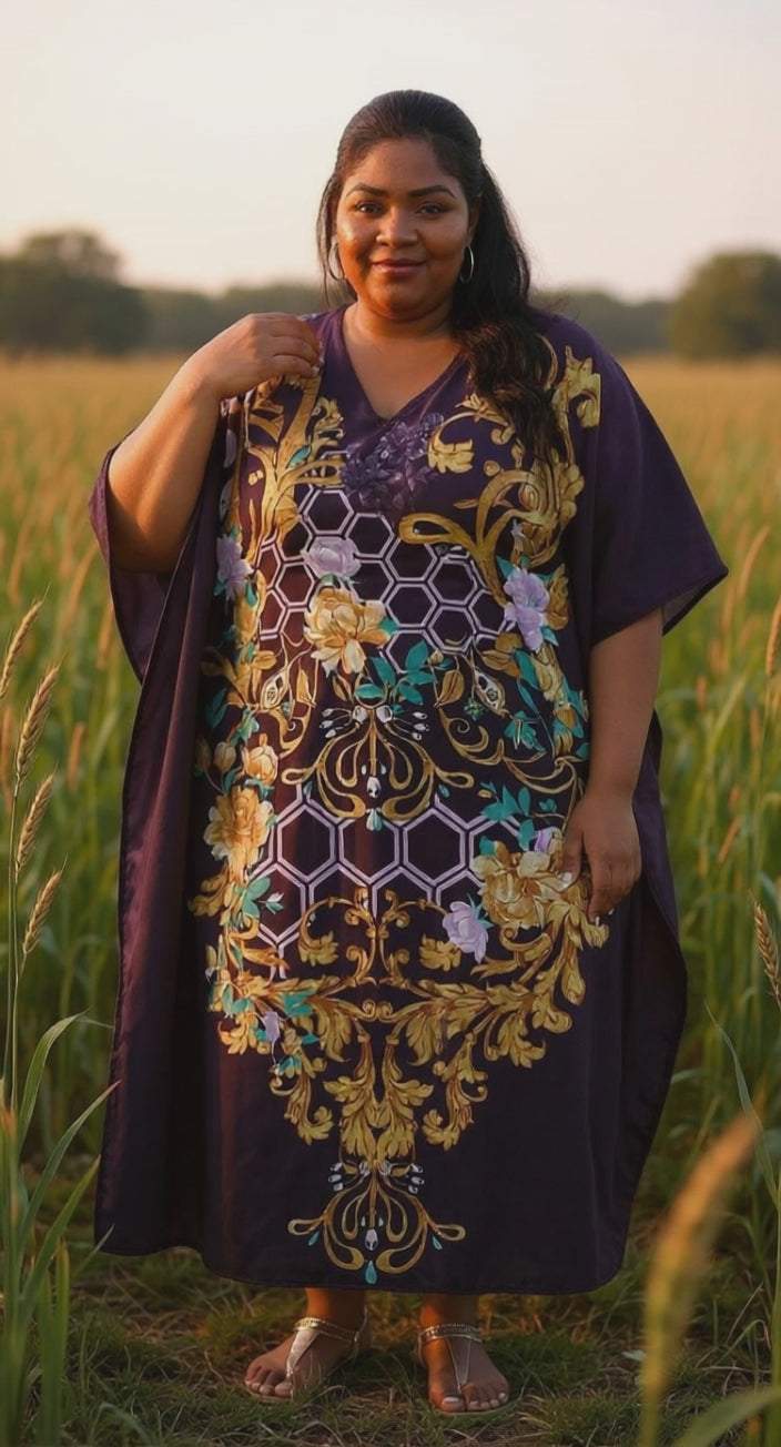 Uncover your individual style with our Floral Printed Purple Polyester Plus Size Kaftan Dress for women. Explore our trendy selections now!