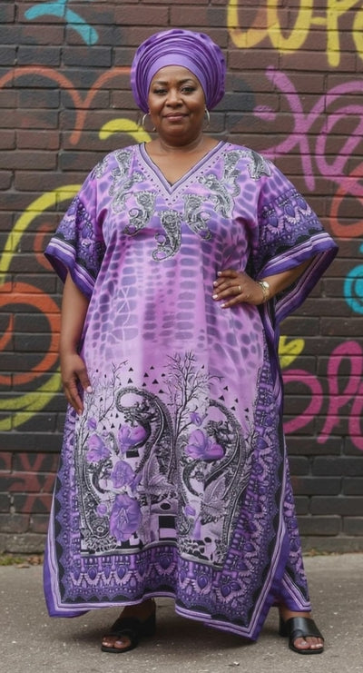 Step up your fashion game with our Paisley Printed Purple Polyester Plus Size Kaftan Dress for Women. Buy now for the ultimate blend of style and comfort!