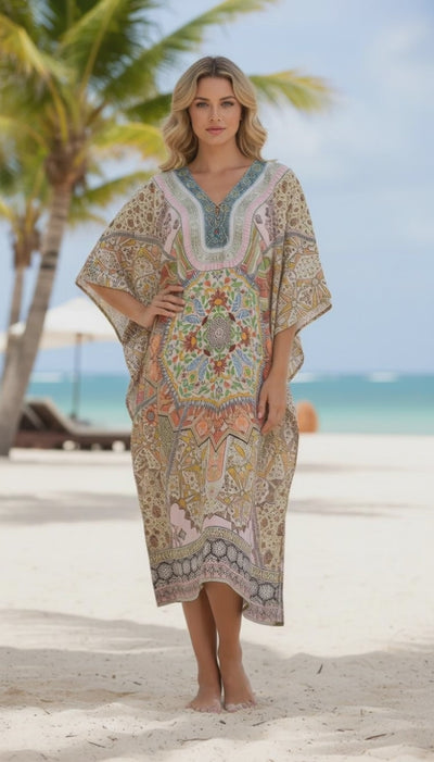 Floral Print Yellow Polyester Plus Size Digital Kaftan Dress For Women