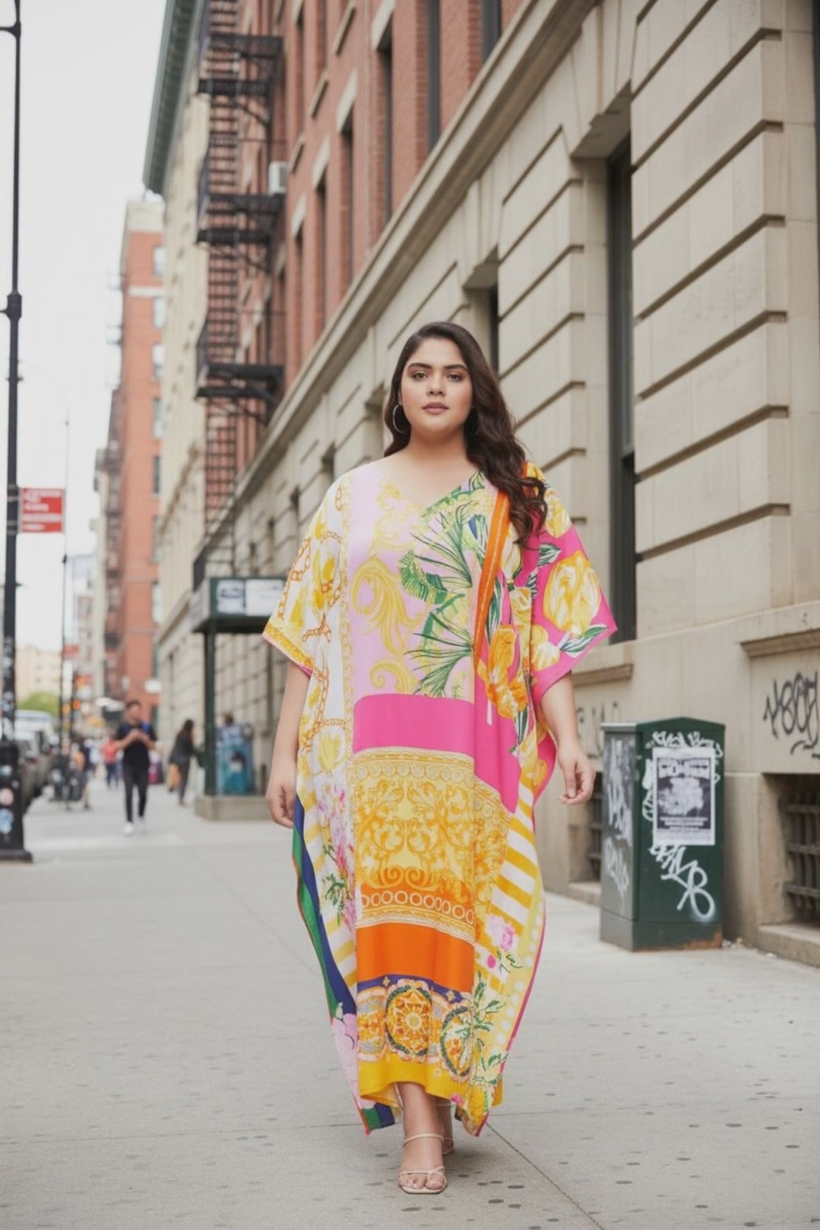 Explore our selection of stylish and comfortable floral printed yellow polyester kaftan plus size dresses for women. Upgrade your wardrobe today!
