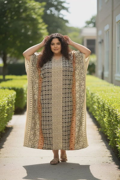 Enjoy the charm of our Geometric Multicolor Polyester Plus Size Caftan Night dress for Women. It's an essential piece for those who appreciate style, comfort, and individuality.