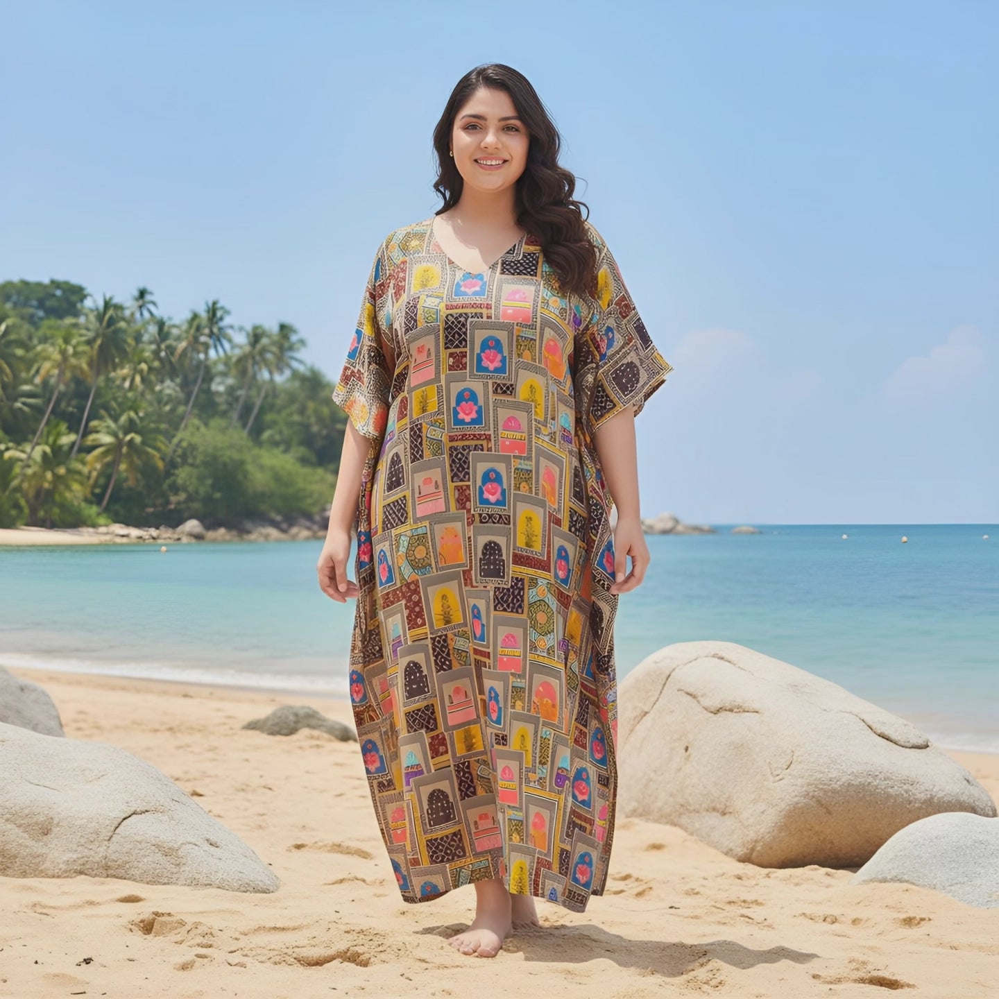 Shop our selection of Geometric Print Multicolor Plus Size Polyester Kaftan Dresses for women and add a pop of color and style to your wardrobe. Browse now!