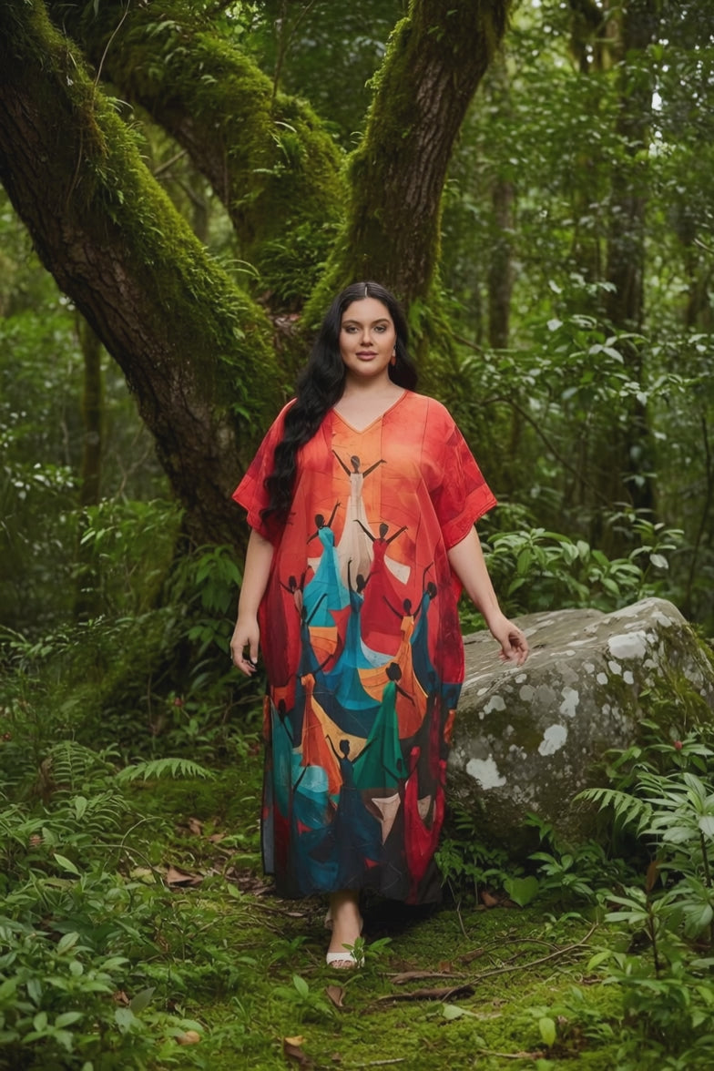 Lady Print Red Polyester Loungewear Plus Size Kaftan Dress