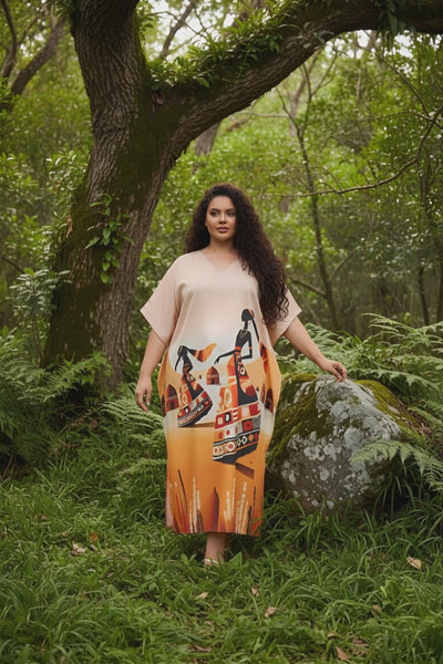 Lady Tribal Beige Polyester Women Plus Size Beach Caftan Dress