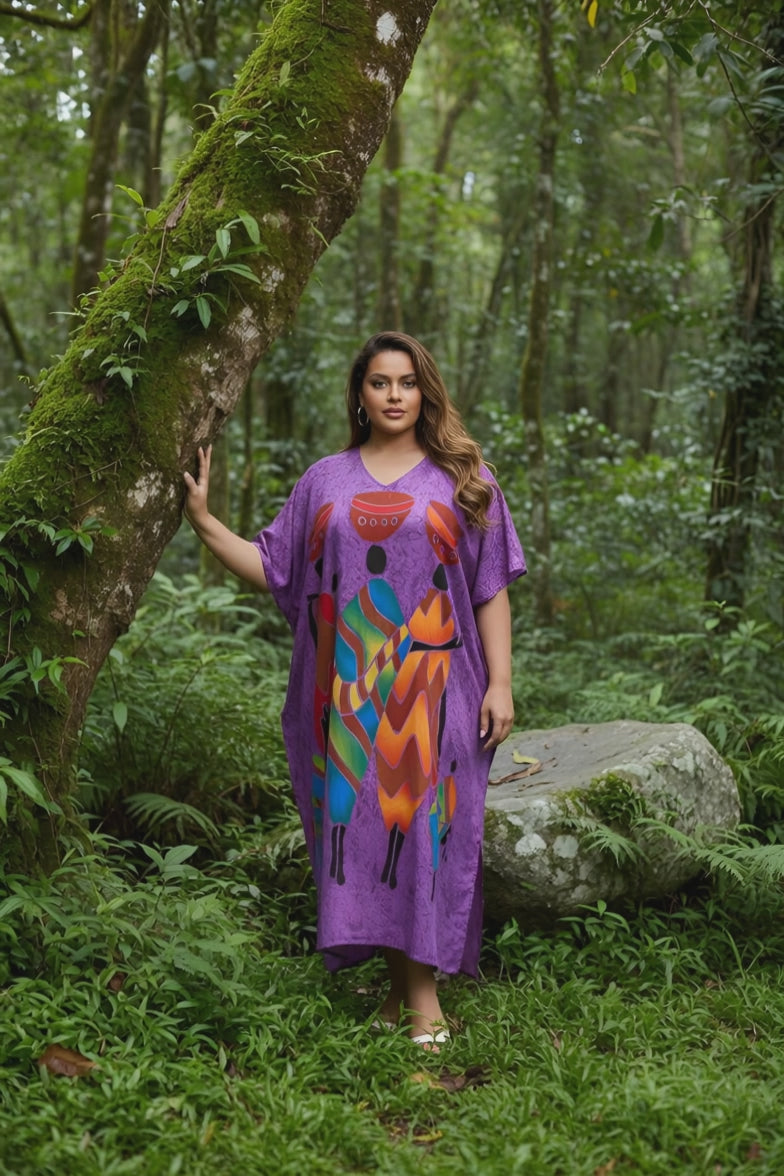 Lady Tribal Purple Polyester Women Plus Size Long Kaftan Dress