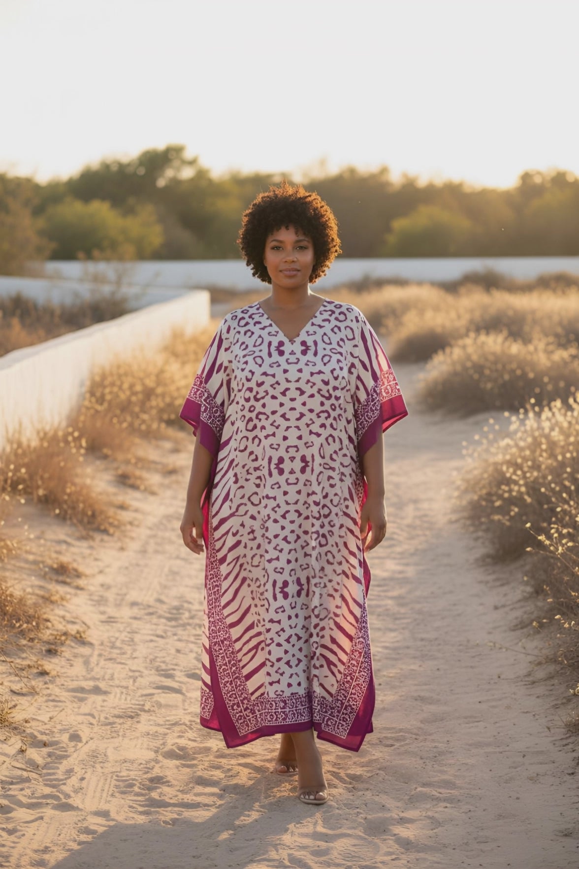 Stay fashionable and comfortable with our Plus Size Kaftan for Women, crafted from soft and breathable polyester material. Ideal for relaxing, beach outings, or casual events, this lightweight maxi dress provides flattering fit for sizes 1X–3X. It serves as perfect beach cover-up, resort attire, everyday loungewear, or sleepwear.
