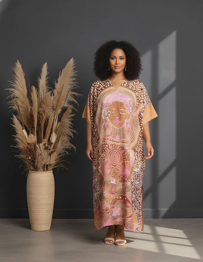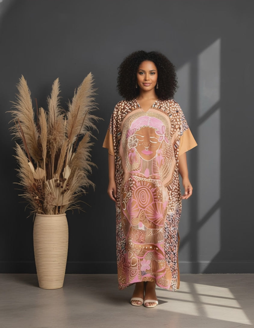 Light Brown Lady Face Polyester Women Plus Size Loungewear Kaftan Dress