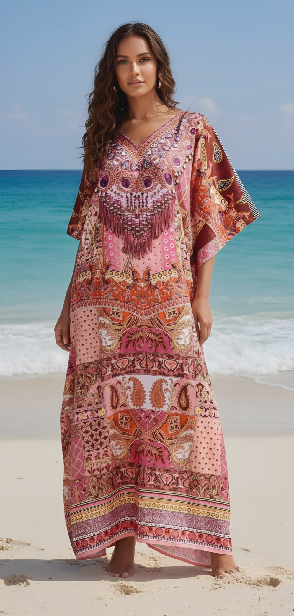Shop our stylish plus-size Satin Silk kaftan, perfect for resort wear, beach cover-ups, or loungewear. Lightweight, flowy, and comfortable, designed to flatter every body type. Ideal for summer and fashion lovers.