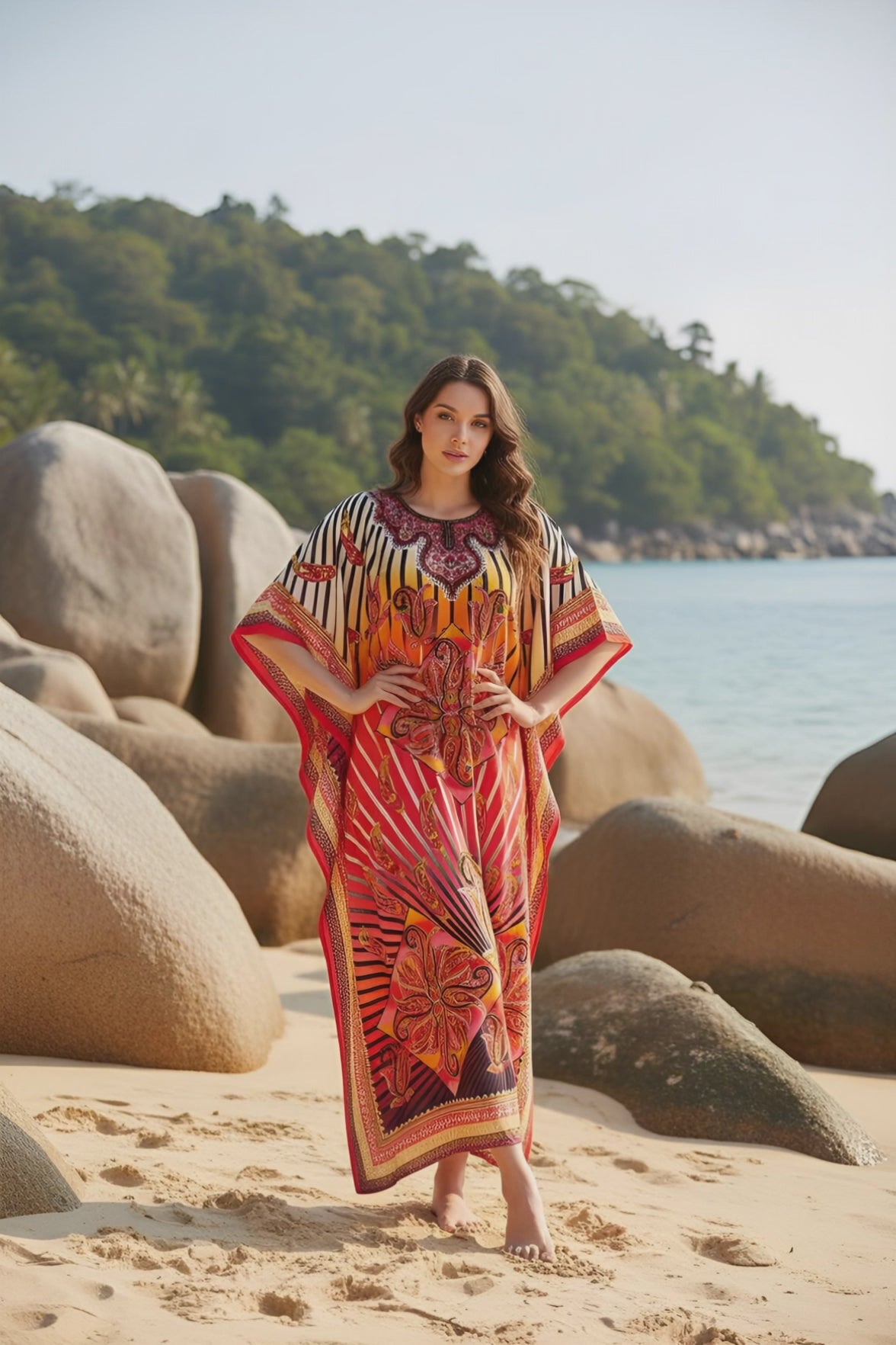 Immerse yourself in the vibrant colors and flattering designs of our Paisley Printed Multicolor Polyester Plus Size Kaftans for women. Check out our latest trends and start shopping now! Details: Pull-On Closure Fabric: Polyester Pattern: Paisley Printed Color: Multicolor Length: Maxi 52" Inches Size Types: Plus Size Silhouette: Fit and Flare Neckline: Round Sleeve Type: Kimono Fit Type: Loose SKU: SG152-8085 Washing Care: Delicately hand wash or machine wash with a gentle cycle to preserve the garment's beauty and longevity.  |