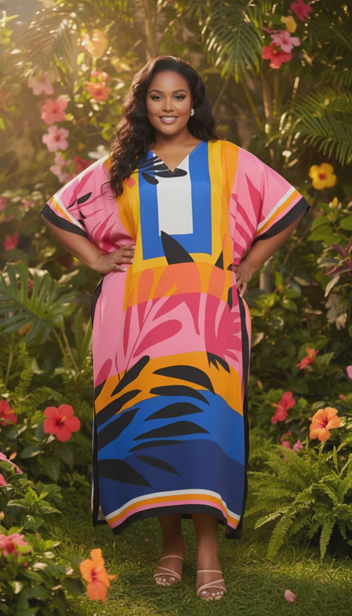 Shop our stylish plus-size polyester kaftan, perfect for resort wear, beach cover-ups, or loungewear. Lightweight, flowy, and comfortable, designed to flatter every body type. Ideal for summer and fashion lovers.