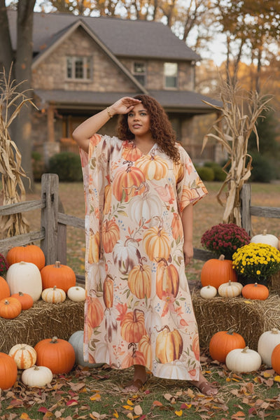 Enjoy the charm of our Pumpkin Multicolor Polyester Kaftan House Dress for Women. It's an essential piece for those who appreciate style, comfort, and individuality.