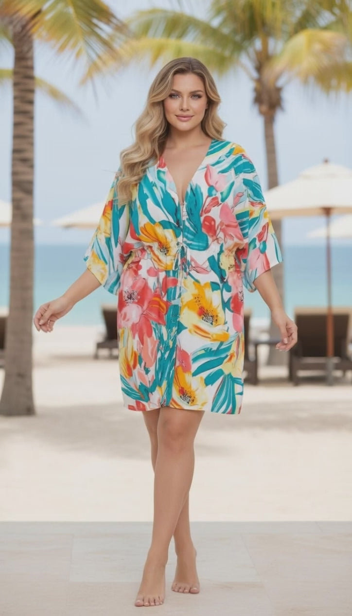 Enjoy the charm of our Floral Print Sky Blue Polyester Plus Size Cover Up for Women. Ideal for any occasion, it’s crafted to flatter and inspire!