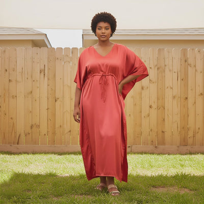 Radiate confidence and strength in our sophisticated Red Solid Satin Plus Size Kaftan Dress for women. Embrace elegance with this essential garment.